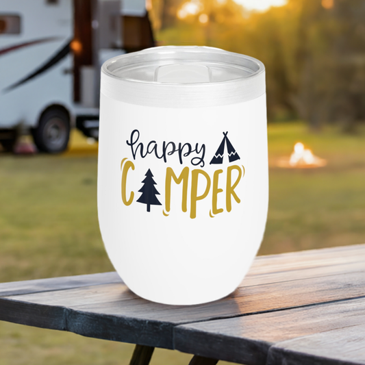 12oz Wine Tumbler - Happy Camper - Vacuum-Insulated Hot/Cold