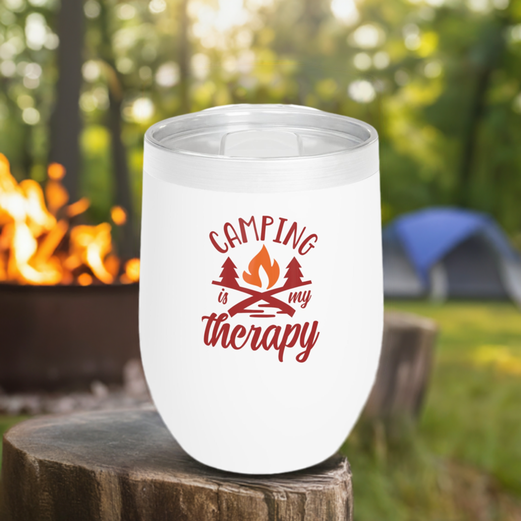 12oz Wine Tumbler - Camping is My Therapy - Vacuum-Insulated Hot/Cold - Camping/RV Life