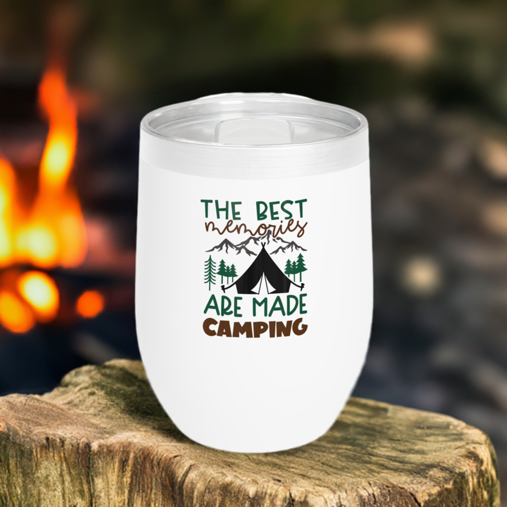 12oz Wine Tumbler - The Best Memories Are Made Camping - Vacuum-Insulated Hot/Cold - Camping/RV Life